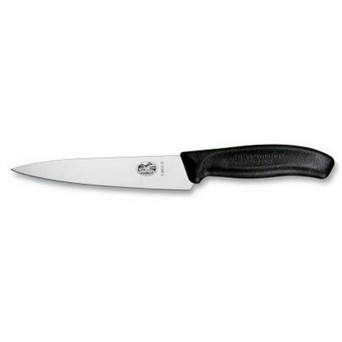 Victorinox 6.8003.15B Couteau à découper et éminceur Victorinox 6.8003.15B. Cuisiner ne se résume pas à la simple préparation d'aliments. Cuisiner est une passion, un hobby, une culture et parfois aussi un art. Mais cuisiner devant tout d'abord être un plaisir, le choix adéquat des ustensiles de cuisine est donc déterminant. Avec sa lame en acier, ce couteau est équipé d'un manche en Fibrox anti-dérapant et ergonomique. Cela vous permettra de préparer vos aliments en toute sérénité et sécurité. Facile à nettoyer et compatible lave-vaisselle.