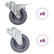 Cet ensemble de 12 roulettes pivotantes a trou de boulon sera l'accessoire ideal pour les petits equipements et les meubles tels que d'etabli, de chariot, de table basse, de support a plantes, de bibliotheque, de panier d'achat, etc.
