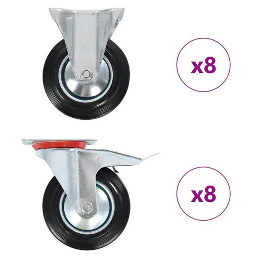 - La livraison inclut 8 roulettes fixes et 8 roulettes pivotantes a frein.