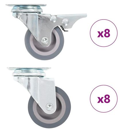 - La livraison inclut 8 roulettes pivotantes et 8 roulettes pivotantes a frein.