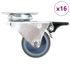 Cet ensemble de 16 roulettes pivotantes doubles, moitie avec frein, sera l'accessoire ideal pour les petits equipements et les meubles tels que d'etabli, de chariot, de table basse, de support a plantes, de bibliotheque, de panier d'achat, etc.