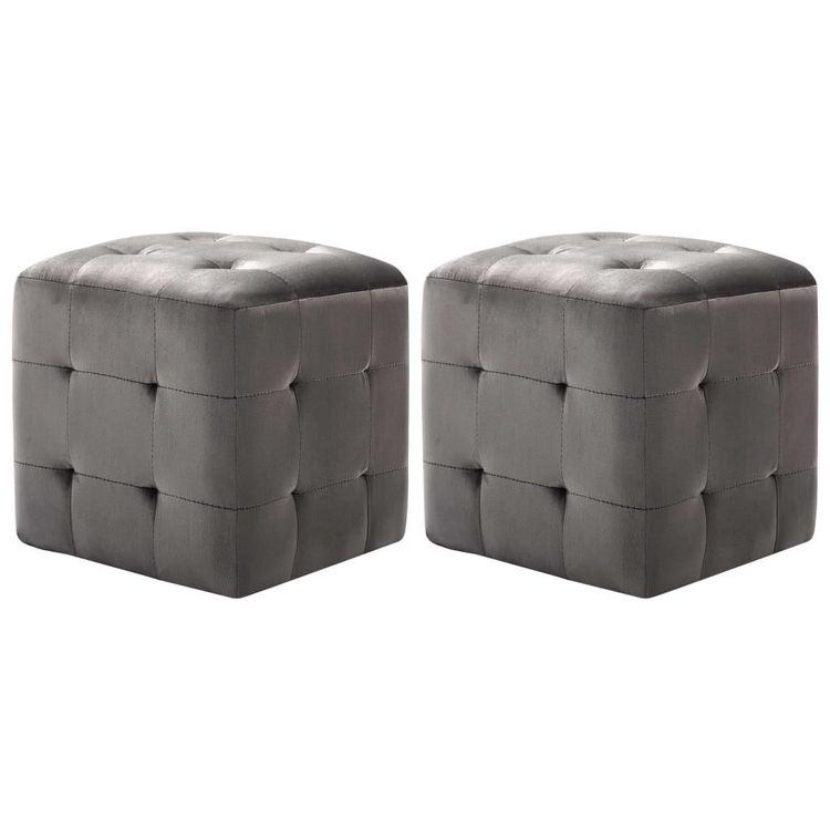 2 pcs Poufs Gris 30 x 30 x 30 cm Tissu velours