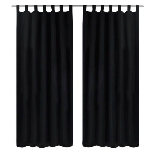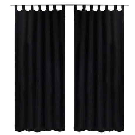 2 pcs Rideau a Passant Micro Satin Noir 140 x 175 cm