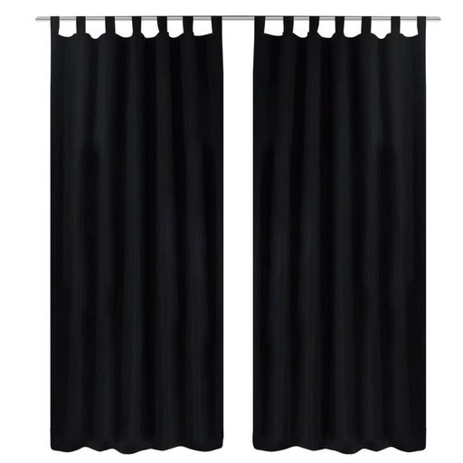 2 pcs Rideau a Passant Micro Satin Noir 140 x 225 cm