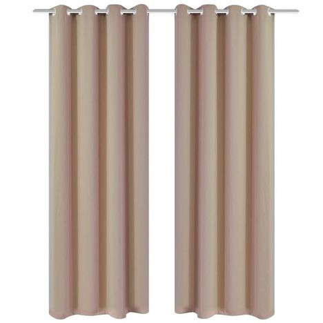 2 pcs Rideau Blackout Occultant Creme avec Œillets en metal 135x245cm