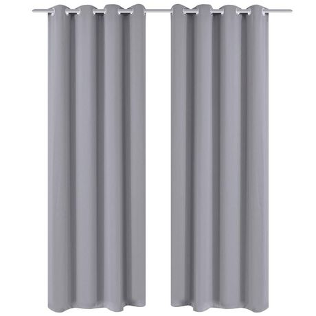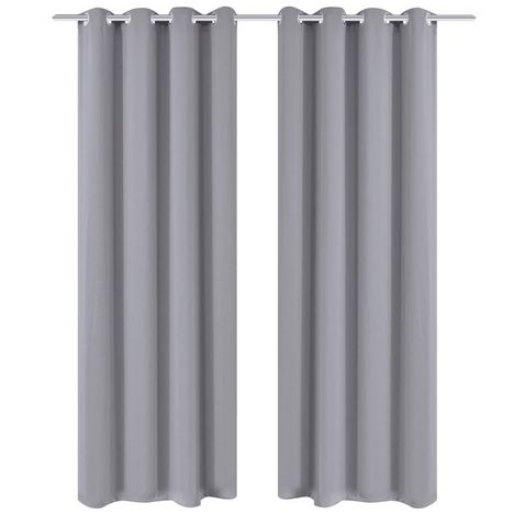 2 pcs Rideau Blackout Occultant Gris avec Œillets en metal 135x245cm