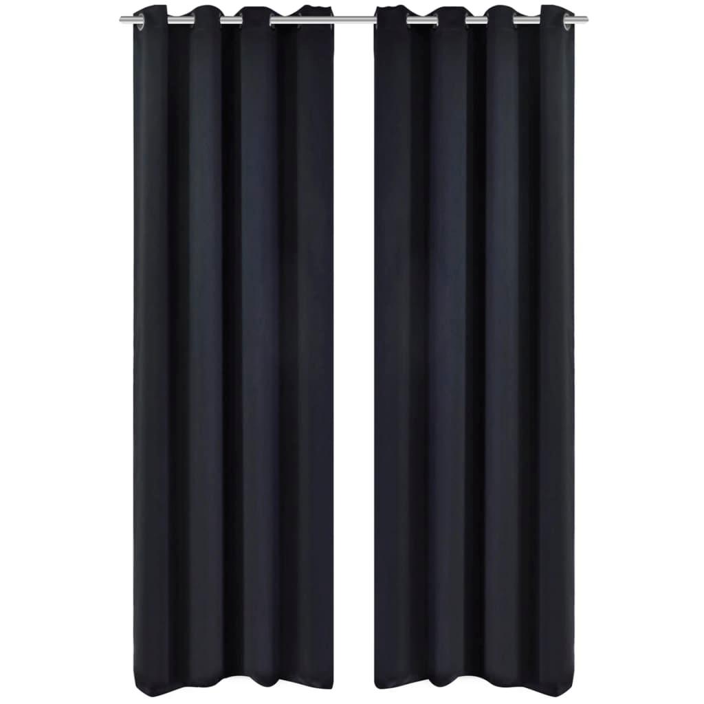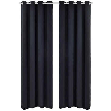 2 pcs Rideau Blackout Occultant Noir avec Œillets en metal 135x245cm