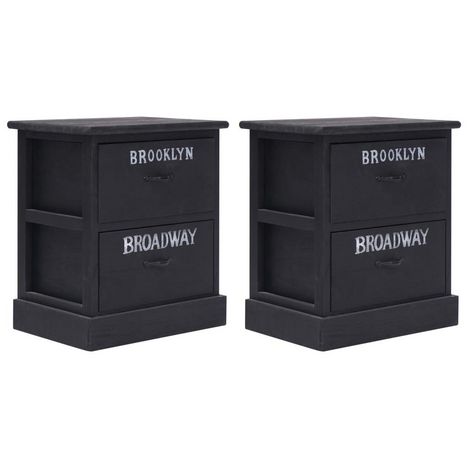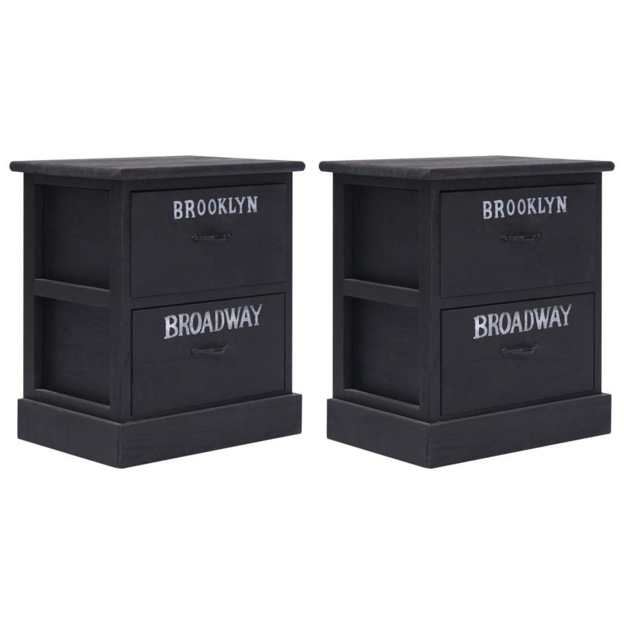 2 pcs Tables de chevet Noir 38x28x45 cm Bois de Paulownia