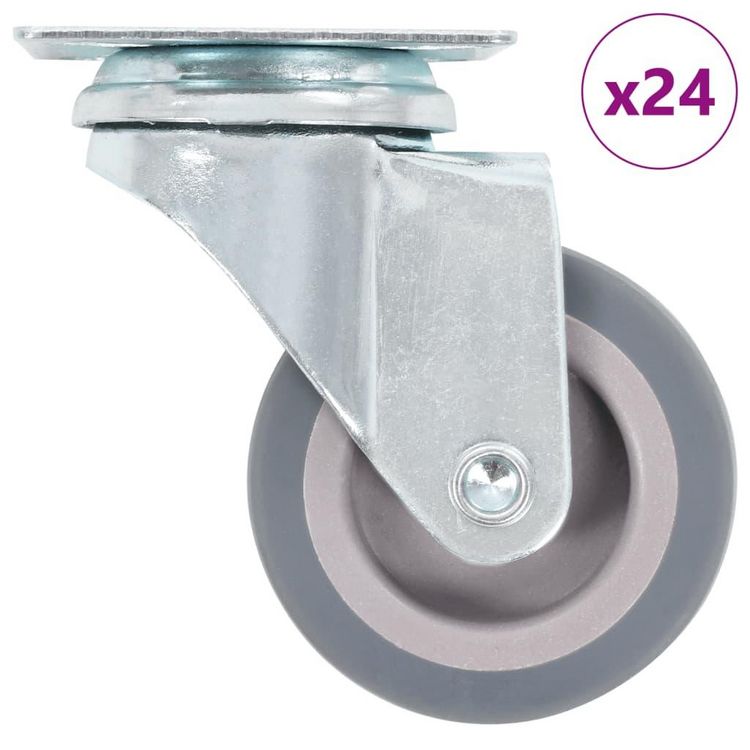 Cet ensemble de 24 roulettes pivotantes sera l'accessoire ideal pour les petits equipements et les meubles tels que d'etabli, de chariot, de table basse, de support a plantes, de bibliotheque, de panier d'achat, etc.