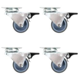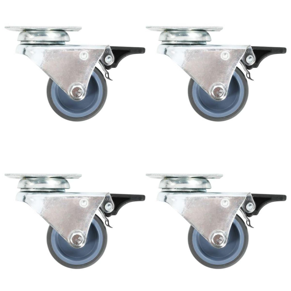 Cet ensemble de 24 roulettes pivotantes doubles, moitie avec frein, sera l'accessoire ideal pour les petits equipements et les meubles tels que d'etabli, de chariot, de table basse, de support a plantes, de bibliotheque, de panier d'achat, etc.