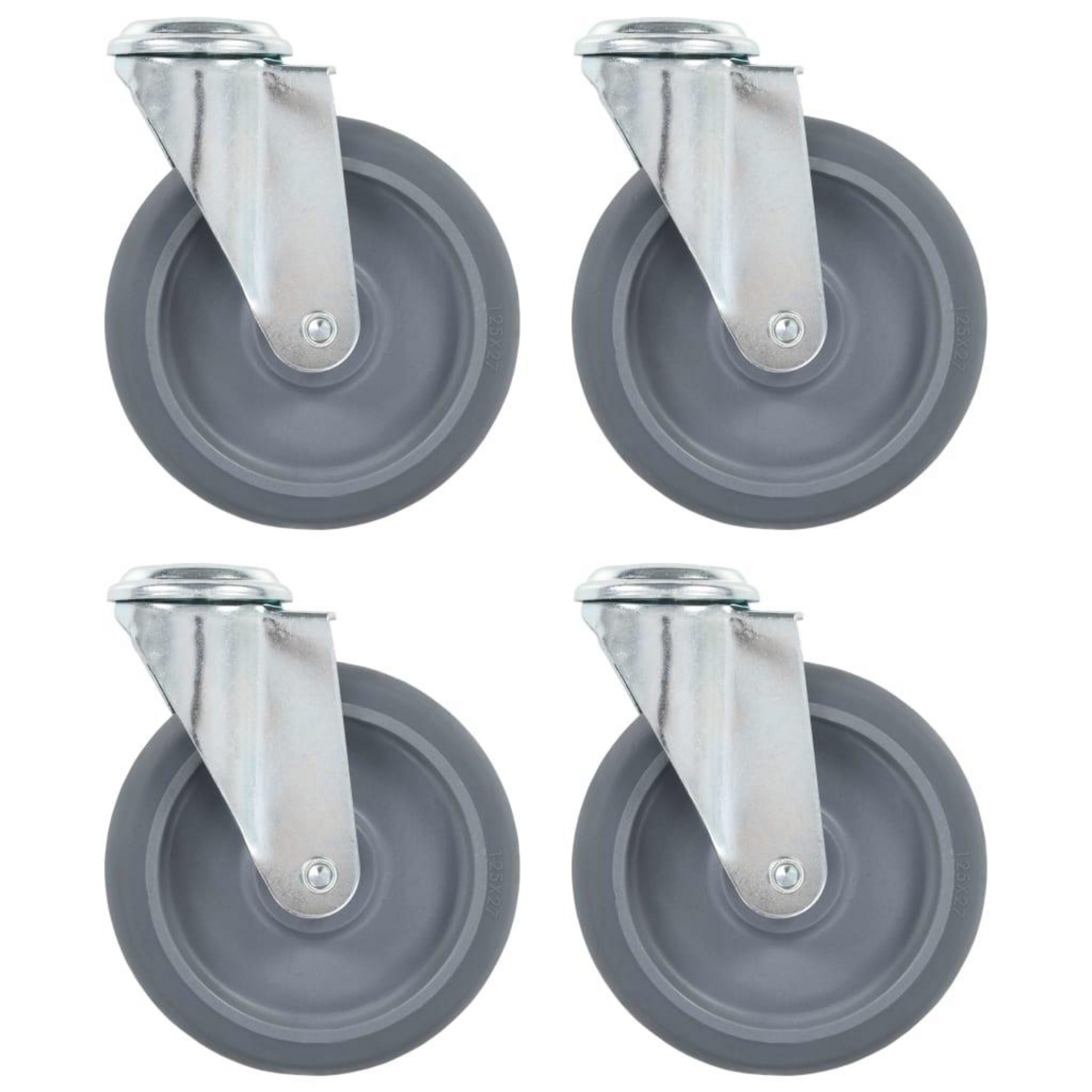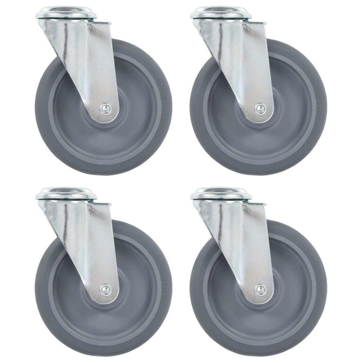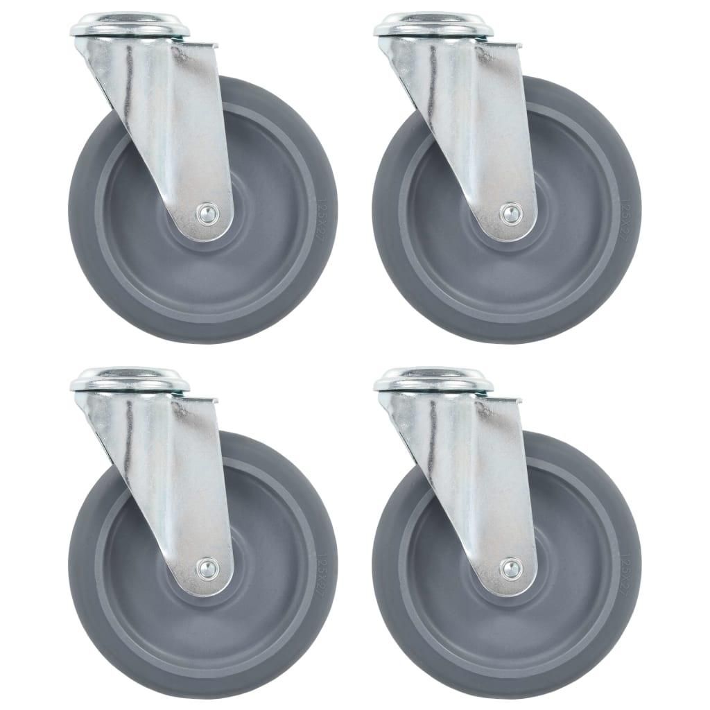 4 pcs Roulettes pivotantes a trou de boulon 125 mm