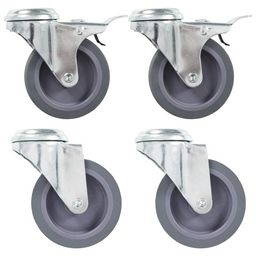4 pcs Roulettes pivotantes a trou de boulon 75 mm