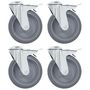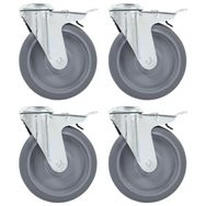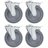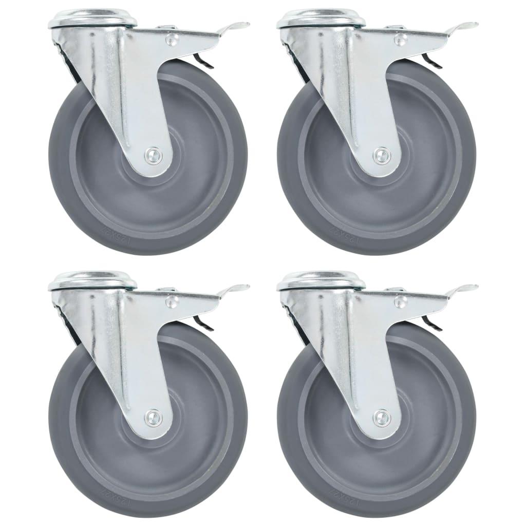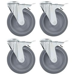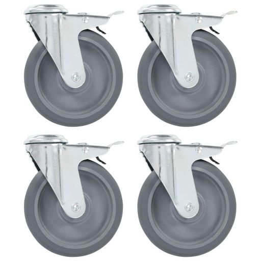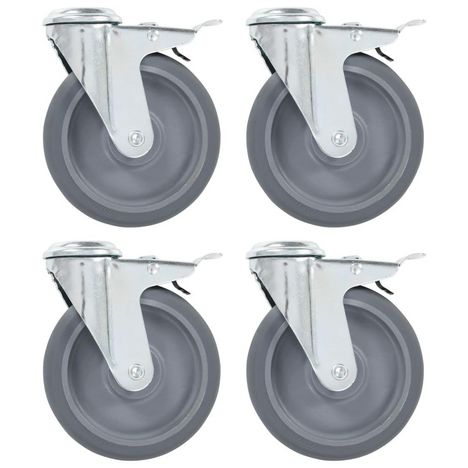 4pcs Roulettes pivotantes a trou de boulon a double frein 125mm