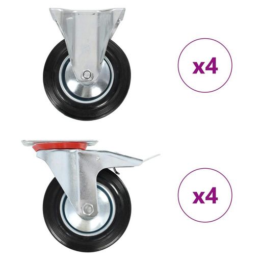 - La livraison inclut 4 roulettes fixes et 4 roulettes pivotantes a frein