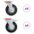Ces roulettes sont fabriquees en caoutchouc qui se distingue par une bonne resistance aux chocs et aux vibrations, permettant a ces roulettes de fonctionner en douceur et silencieusement. De plus, leurs surfaces douces protegent efficacement votre sol des egratignures. En outre, le cadre en fer zingue est hautement resistant a la rouille et ajoute ainsi a la robustesse et a la durabilite de la roulette pivotante. Moitie de ces roulettes pivotantes sont equipees de freins pour controle flexible. Chaque roulette pivotante a une capacite de charge maximale de 100 kg.