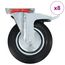 Ces roulettes sont fabriquees en caoutchouc qui se distingue par une bonne resistance aux chocs et aux vibrations, permettant a ces roulettes de fonctionner en douceur et silencieusement. De plus, leurs surfaces douces protegent efficacement votre sol des egratignures. En outre, le cadre en fer zingue est hautement resistant a la rouille et ajoute ainsi a la robustesse et a la durabilite de la roulette pivotante. Ces roulettes pivotantes sont equipees de freins pour controle flexible. Chaque roulette pivotante a une capacite de charge maximale de 180 kg.