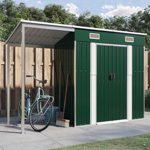 Abri de jardin avec toit prolonge vert 277x110,5x181 cm acier