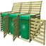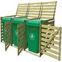 Fabrique en bois de pin impregne de vert, cet abri a poubelle sur roulettes est tres robuste, durable, resistant a l'eau et a la rouille. Ce stockage de poubelle peut accueillir 3 poubelles de 240 L (hauteur maximale de 115 cm) et convient parfaitement au decor de votre jardin. Remarque : Les bacs sur roulettes ne sont pas incluses dans la livraison.