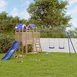 Vous voulez donner à vos enfants la liberté de jouer à la maison ? Cet ensemble de jeu d'extérieur en bois transforme votre jardin en un terrain de jeu propice aux aventures imaginatives ! Matériau durable : ce cadre d'aire de jeux de jardin est fabriqué en bois de pin imprégné sous vide. Le bois de pin massif est connu pour sa résistance et sa durabilité. Ses grains droits et ses nœuds distinctifs contribuent à son charme rustique. Il a été imprégné avec une solution de conservation et a subi un traitement en autoclave, ce qui renforce sa résistance à la pourriture et aux intempéries.Cadre en bois stable : le cadre en bois de la maisonnette de jardin garantit sa robustesse et sa stabilité. De plus, les pieds en forme de A de la balançoire pour enfants permettent de garder l'équilibre.Centres multi-activités : le cadre d'escalade est doté d'une plate-forme de 90 cm de hauteur et se distingue par son toboggan à vagues, une balançoire double, une échelle ainsi que des bacs à sable. Vos enfants peuvent également inviter leurs amis à se joindre à eux.Conception réfléchie : les garde-corps en bois qui entourent l'abri sont conçus pour assurer la sécurité des enfants pendant qu'ils s'amusent. De plus, le toit en forme de nuage offre de l'ombre à vos enfants pendant les chaudes journées d'été.Plaisir sans fin : cette aire de jeux d'extérieur en bois est le moyen idéal pour vos enfants et leurs amis de se divertir, d'avoir plus de temps interactif et de créer des souvenirs pour vous et vos enfants ! Attention :Uniquement pour un usage domestiqueUtilisation extérieureNe convient pas aux enfants de moins de 3 ansÂge recommandé : 3-8 ansPoids maximal par utilisateur : 45 kg Bon à savoir :Le produit doit être ancré afin de réduire les risques de basculement. Les ancrages ne sont pas inclus.