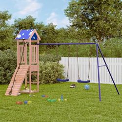 Vous voulez donner à vos enfants la liberté de jouer à la maison ? Cet ensemble de jeu d'extérieur en bois transforme votre jardin en un terrain de jeu propice aux aventures imaginatives ! Matériau durable : ce cadre d'aire de jeux de jardin est fabriqué en bois de douglas massif. Le bois de douglas est connu pour sa résistance et sa durabilité. Sa couleur brun rougeâtre riche et ses grains uniques dégagent une ambiance chaleureuse et naturelle. Sa stabilité et sa résistance aux intempéries sont idéales pour la fabrication de meubles d'intérieur et d'extérieur.Cadre en bois stable : le cadre en bois de la maisonnette de jardin garantit sa robustesse et sa stabilité. De plus, les pieds en forme de A de la balançoire pour enfants permettent de garder l'équilibre.Centres multi-activités : le cadre d'escalade est doté d'une plate-forme de 90 cm de hauteur et se distingue par son mur d'escalade, une double balançoire ainsi qu'un bac à sable. Vos enfants peuvent également inviter leurs amis à s'amuser.Conception réfléchie : les garde-corps en bois qui entourent l'abri sont conçus pour assurer la sécurité des enfants pendant qu'ils s'amusent. De plus, le toit en forme de nuage offre de l'ombre à vos enfants pendant les chaudes journées d'été.Plaisir sans fin : cette aire de jeux d'extérieur en bois est le moyen idéal pour vos enfants et leurs amis de se divertir, d'avoir plus de temps interactif et de créer des souvenirs pour vous et vos enfants ! Attention :Uniquement pour un usage domestiqueUtilisation extérieureNe convient pas aux enfants de moins de 3 ansÂge recommandé : 3-8 ansPoids maximal par utilisateur : 45 kg Bon à savoir :Le produit doit être ancré afin de réduire les risques de basculement. Les ancrages ne sont pas inclus.