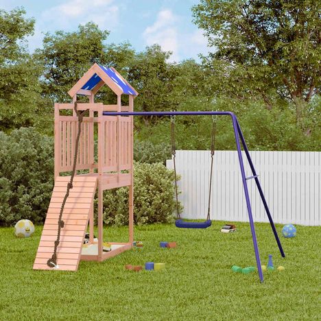 Vous voulez donner a vos enfants la liberte de jouer a la maison ? Cet ensemble de jeu d'exterieur en bois transforme votre jardin en un terrain de jeu propice aux aventures imaginatives ! Materiau durable : ce cadre d'aire de jeux de jardin est fabrique en bois de douglas massif. Le bois de douglas