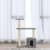 Vos amis a fourrure peuvent aiguiser leurs griffes sur les poteaux a gratter enveloppes dans une corde de sisal, ce qui leur donne un bon endroit pour leurs instincts de grattage. De plus, ils se rejouiront aussi de se courir apres tout en sautant de haut en bas de ce centre de jeu amusant. Lorsqu'ils auront assez de jeu, vos petits amis a fourrure adoreront se reposer sur les plates-formes superieures ou ils auront une meilleure vue. En outre, ils peuvent aussi se cacher dans la maison douillette pour faire une sieste, ou se reposer sur le confortable siege en peluche.