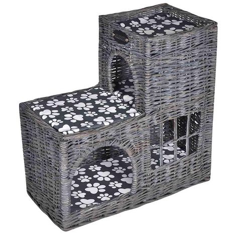 Il s'agit d'un lit de chat tisse extravagant et elabore. Le coussin moelleux epaississement rembourre inclus le rend vraiment confortable. Faite de saule, cette maison pour animaux de compagnie est robuste, mais suffisamment legere pour etre emportee. Cette maison pour animaux de compagnie peut egalement etre utilisee a l'exterieur, dans le jardin ou sur la terrasse, pour que votre chat, chaton, chien ou chiot puisse dormir, se reposer ou jouer. Les animaux de compagnie apprecieront le soleil tout en se prelassant au dernier etage !