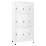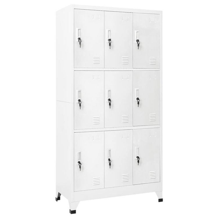 Avec 9 compartiments separes avec portes, cette armoire a casier dispose d'un grand espace de rangement pour garder les vetements et autres effets personnels en securite. Chaque compartiment presente un porte-carte de nom. Les pieds en plastique empechent vos planchers de s'egratigner.