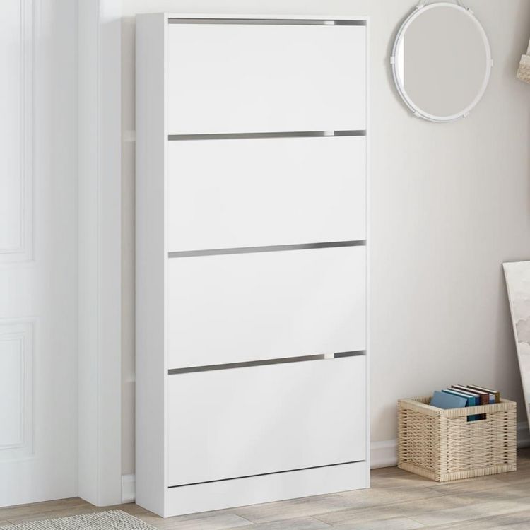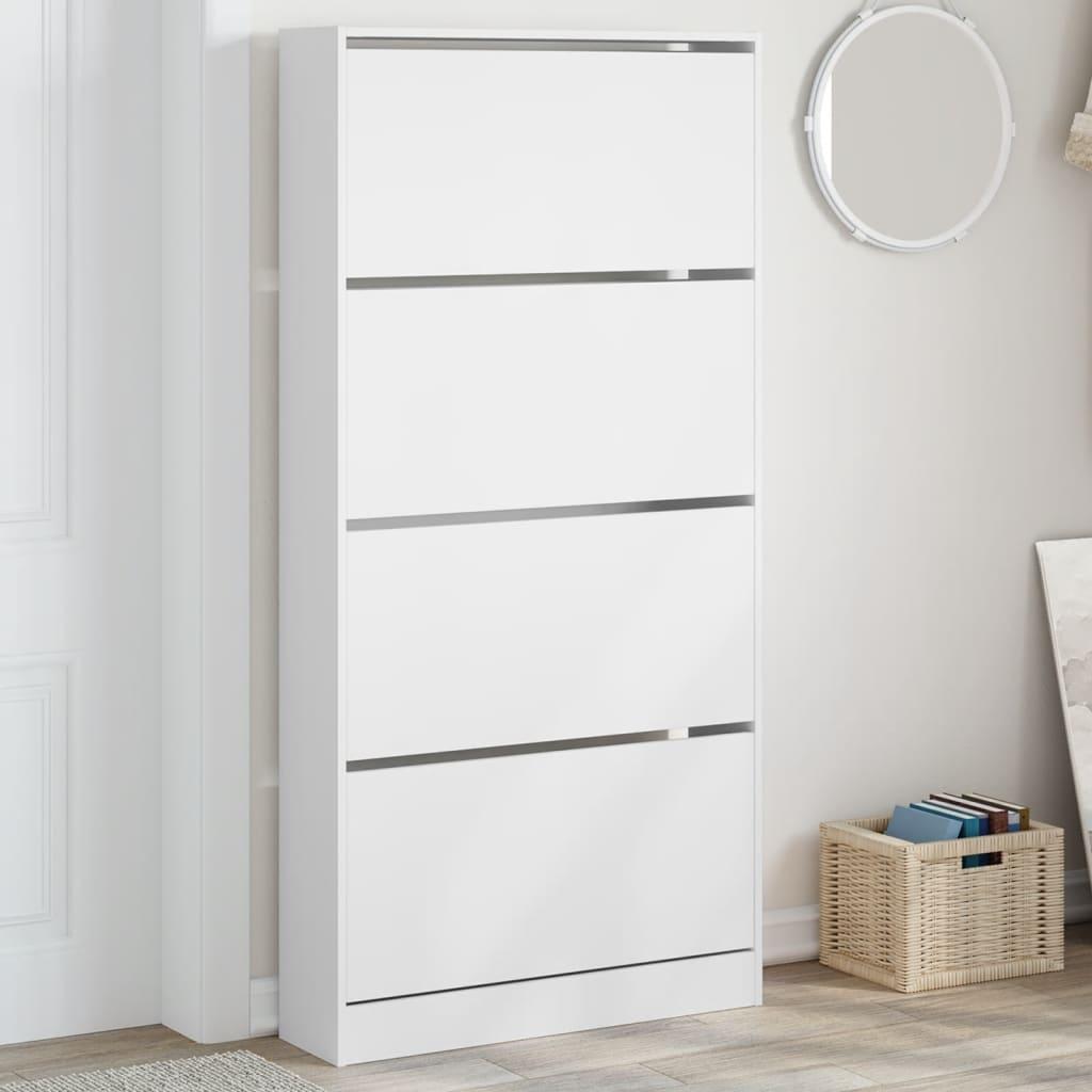 Armoire a chaussures 4 tiroirs rabattables blanc 80x21x163,5 cm