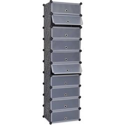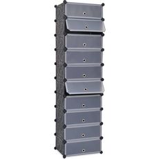 Cet organisateur de chaussures elegant et fonctionnel a 10 compartiments, chacun avec une porte, et gardera toutes vos chaussures propres et organisees en un seul endroit. L'armoire a chaussures est faite de panneaux en plastique de haute qualite avec des cadres en acier pour la rendre rigide et dur