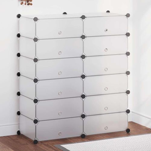 Cet organisateur de chaussures elegant et fonctionnel a 12 compartiments, chacun avec une porte, et gardera toutes vos chaussures propres et organisees en un seul endroit.
