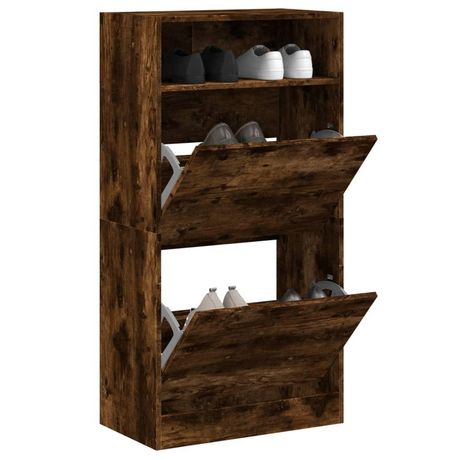 Armoire a chaussures chene fume 60x34x116 cm bois d'ingenierie
