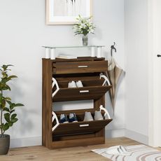 - Dessus pratique : la solide etagere superieure en verre de l'armoire a chaussures est egalement ideale pour exposer des objets decoratifs, des cadres photo ou des plantes en pot.