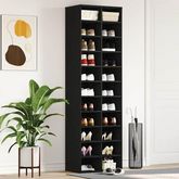 Cette armoire à chaussures VIDAXL en bois d'ingénierie chêne noir allie esthétique contemporaine et praticité. Son fini noir mat et sa structure épurée s'intègrent harmonieusement dans les intérieurs modernes, tout en offrant un rangement organisé pour 12 à 15 paires de chaussures.
