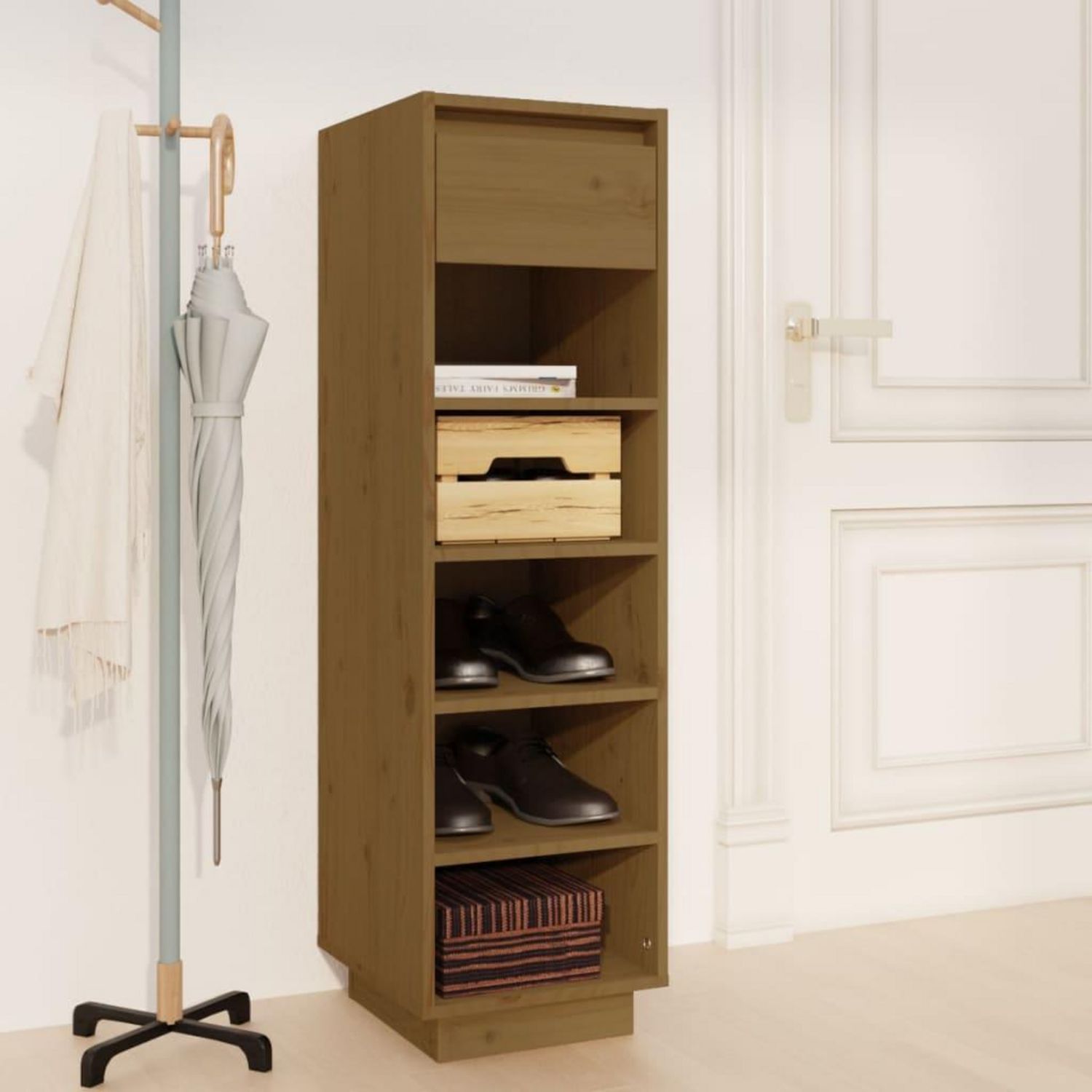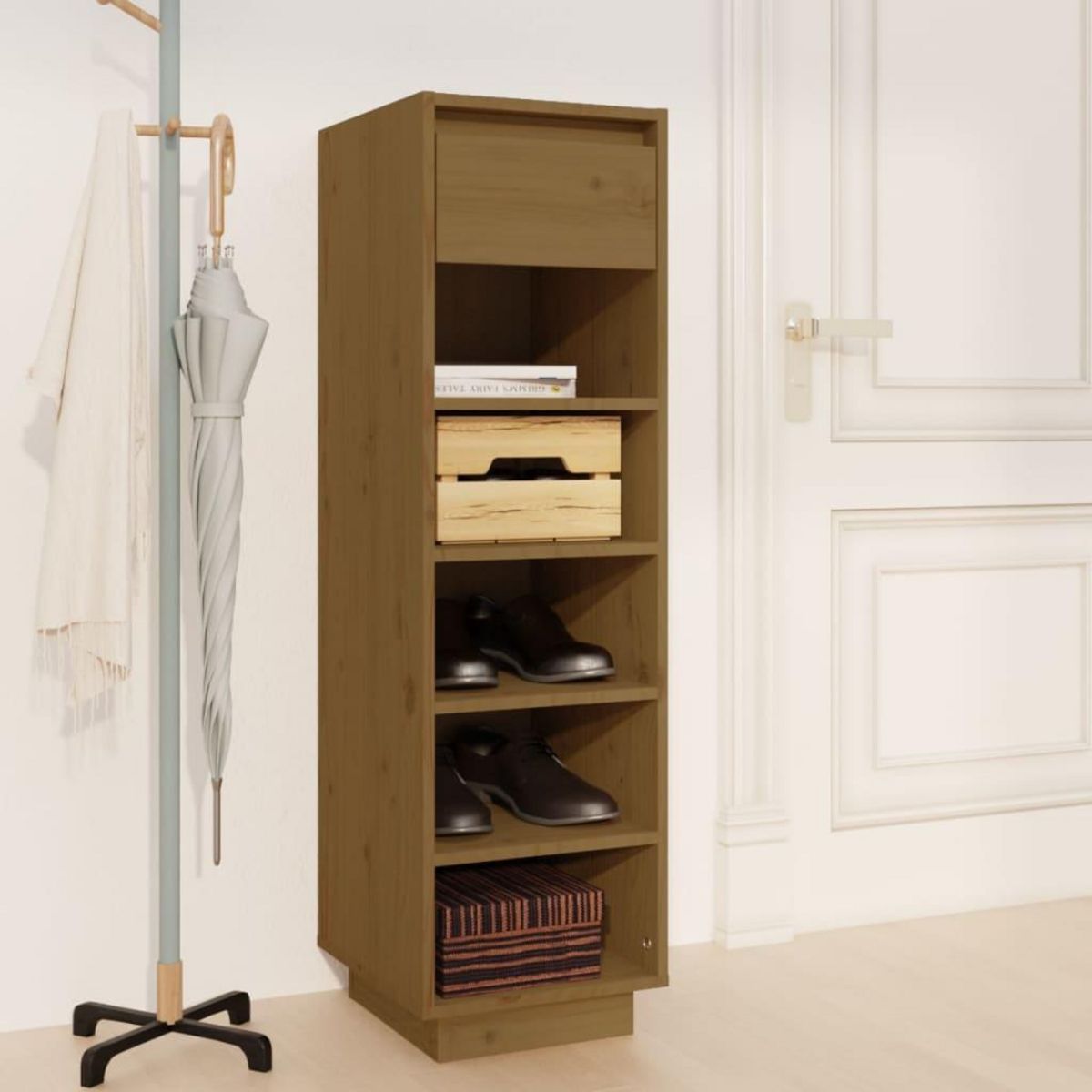 Armoire a chaussures marron miel 30x34x105cm bois de pin massif