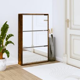 Armoire a chaussures miroir 3 niveaux Chene fume 63x17x102,5 cm