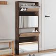 Armoire a chaussures miroir 4 niveaux chene marron 63x17x134 cm