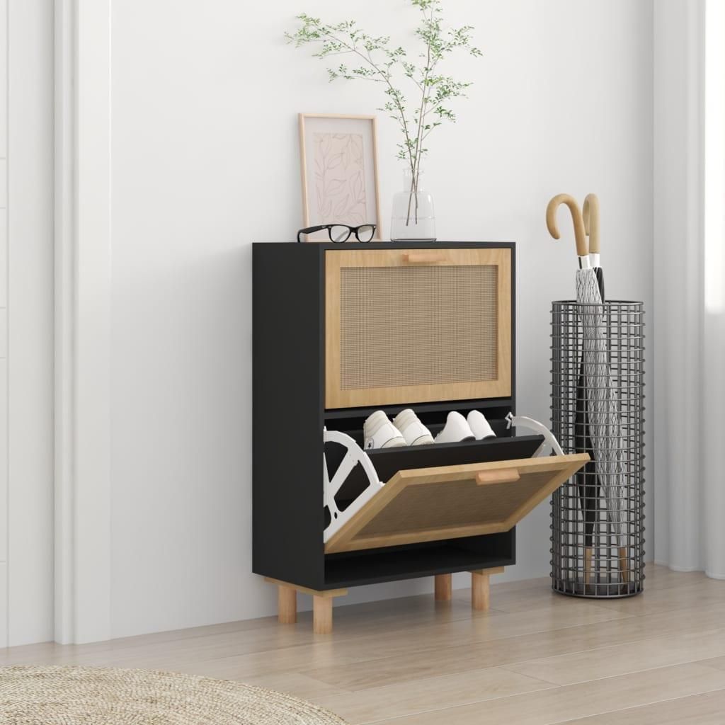 Armoire a chaussures Noir 52x25x80 cm Bois d'ingenierie/rotin