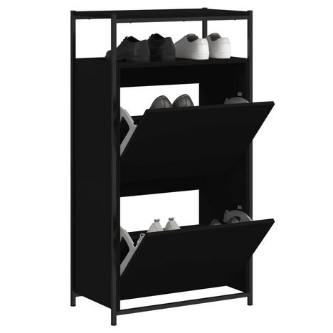 Armoire a chaussures noir 60x34x112 cm bois d'ingenierie
