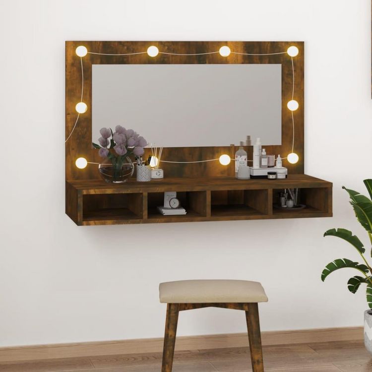 Armoire a miroir avec LED Chene fume 90x31,5x62 cm