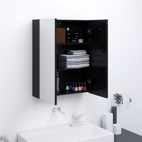 Armoire a miroir de salle de bain 60x15x75 cm MDF Noir brillant