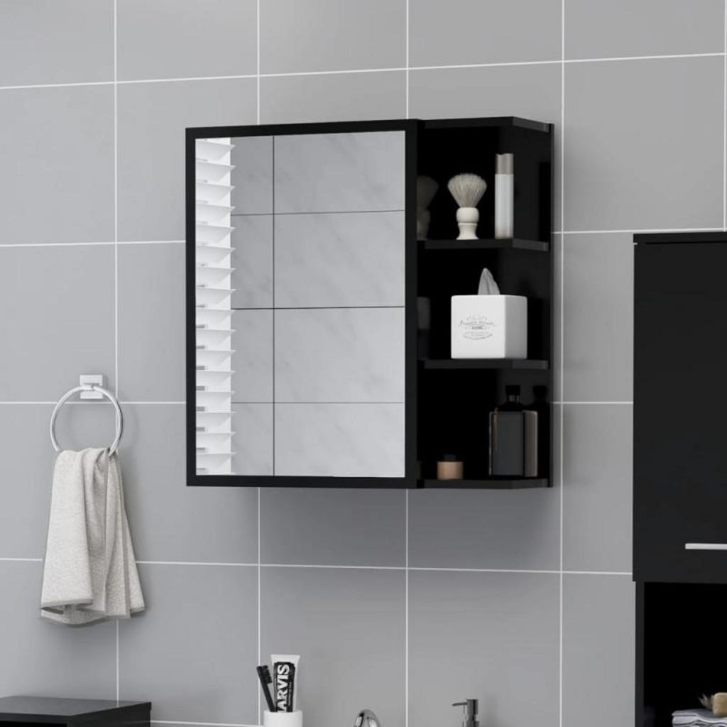 Armoire à miroir de salle de bain Noir Bois d'ingénierie