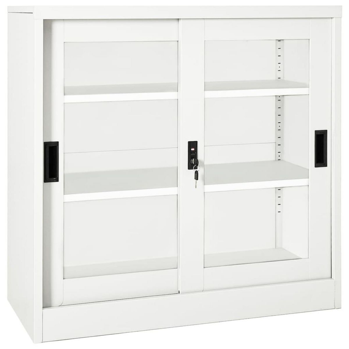 L'armoire de rangement est en acier et en verre trempe, ce qui la rend extremement robuste et durable. La porte coulissante assure une ouverture et une fermeture en douceur. Avec 2 etageres reglables, l'armoire convient au rangement de dossiers de differentes tailles. Le alteur dispose egalement d'une serrure pour proteger vos documents personnels des invites indesirables. Les armoires a portes coulissantes conviennent aux pieces dont l'espace est limite ou aux petites allees, dans lesquelles il n'est pas possible d'utiliser des armoires a portes battantes.