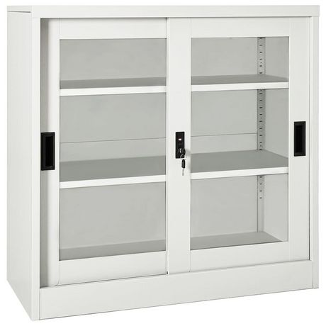 L'armoire de rangement est en acier et en verre trempe, ce qui la rend extremement robuste et durable. La porte coulissante assure une ouverture et une fermeture en douceur. Avec 2 etageres reglables, l'armoire convient au rangement de dossiers de differentes tailles. Le alteur dispose egalement d'une serrure pour proteger vos documents personnels des invites indesirables. Les armoires a portes coulissantes conviennent aux pieces dont l'espace est limite ou aux petites allees, dans lesquelles il n'est pas possible d'utiliser des armoires a portes battantes.