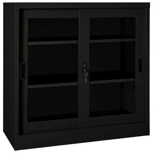 L'armoire de rangement est en acier et en verre trempe, ce qui la rend extremement robuste et durable. La porte coulissante assure une ouverture et une fermeture en douceur. Avec 2 etageres reglables, l'armoire convient au rangement de dossiers de differentes tailles. Le alteur dispose egalement d'une serrure pour proteger vos documents personnels des invites indesirables. Les armoires a portes coulissantes conviennent aux pieces dont l'espace est limite ou aux petites allees, dans lesquelles il n'est pas possible d'utiliser des armoires a portes battantes.