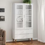 Cette armoire a vitrine en bois tendance, au design scandinave, est conçue pour etre un supplement decoratif et pratique a votre decoration d'interieur existante. Bois de pin massif : le bois de pin massif est un materiau naturel magnifique. Le bois de pin a un grain droit et les nœuds donnent au ma