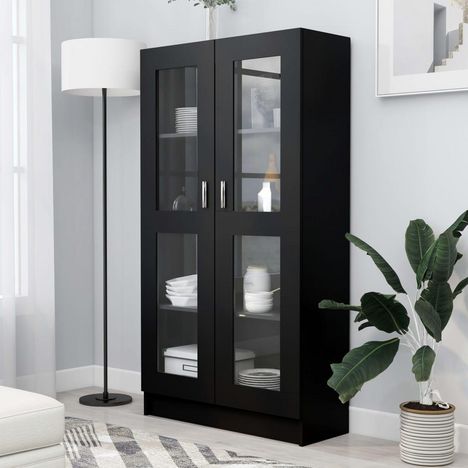Armoire a vitrine Noir 82,5x30,5x150 cm Bois d'ingenierie
