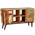 Ce meuble de rangement est fait de bois de recuperation, ce qui signifie que chaque meuble est unique et legerement different l'un de l'autre. Le mobilier fabrique a partir de bois de recuperation a des caracteristiques de differents bois comme le bois de teck, l'acacia, le bois de manguier, le bois de saal etc. Le bois de recuperation est solide, stable, durable et beau. Les trous de clous ou les grains a face claire apportent leur histoire avec eux et invitent une autre generation a les impregner des leurs. Garder ce meuble a la maison montrera votre concept de conservation des ressources, de protection de l'environnement et de developpement durable.
