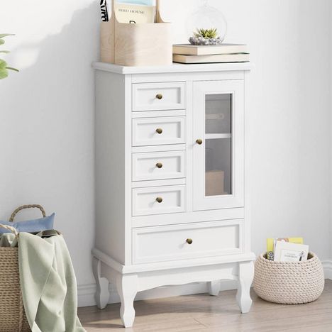 Armoire avec 5 tiroirs et 2 etageres Blanc