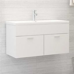 Armoire d'evier avec lavabo integre Blanc Agglomere